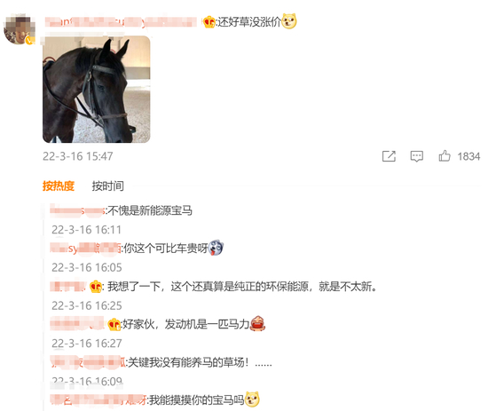 更有网友开始调侃,还好草没涨价。已经在看马了。