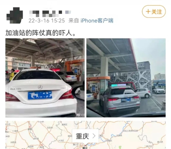 值得一提的,在凌晨排队加油的车队中,不乏宝马5系、奥迪A8L,以及奔驰GLS等高端车型的身影。