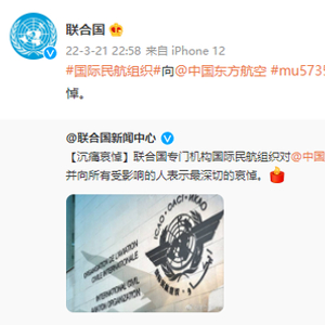 据@联合国新闻中心 3月21日发布微博,联合国专门机构国际民航组织对@中国东方航空 #mu5735#航班的不幸失事感到悲痛,并向所有受影响的人表示最深切的哀悼。
