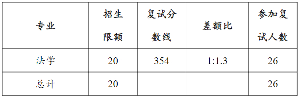 专业型硕士拟招生名额及复试分数线表