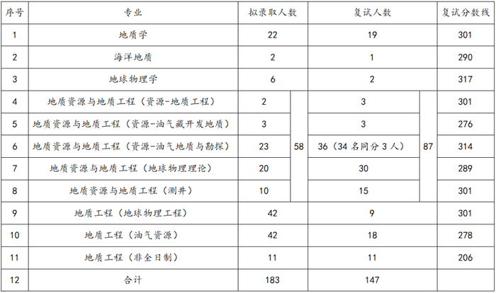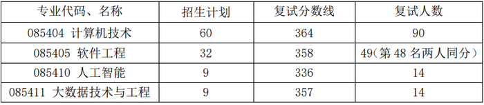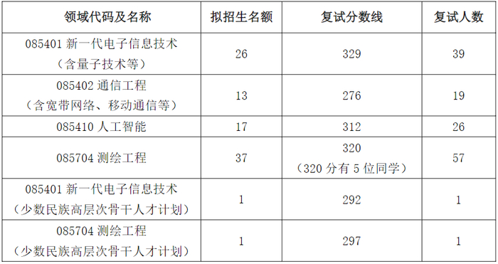 各专业复试人数及复试分数线