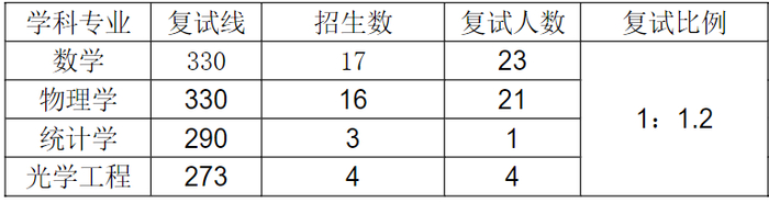 学术硕士复试分数线、人数与比例