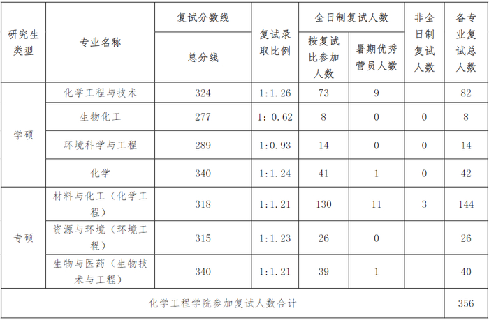 专业硕士复试分数线、人数与比例