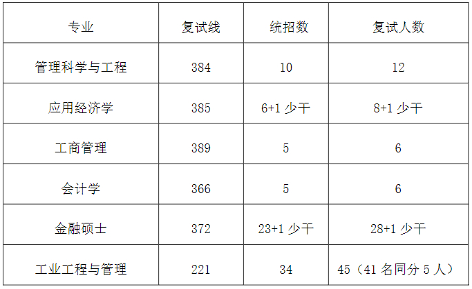 2、非全日制工程管理硕士(MEM)复试分数线为:总分189分,其中英语单科不低于47分,管理类联考综合能力单科不低于94分。拟录取23人。