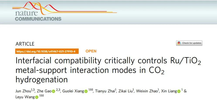 近日,我院相国磊和汪乐余教授团队在Nature Communications发表题为“Interfacial compatibility critically controls Ru/TiO2 metal-support interaction modes in CO2 hydrogenation”的研究论文,Nat. Commun. 13, 327 (2022). https://doi.org/10.1038/s41467-021-27910-4,探索CO2加氢反应催化剂的界面设计原理。