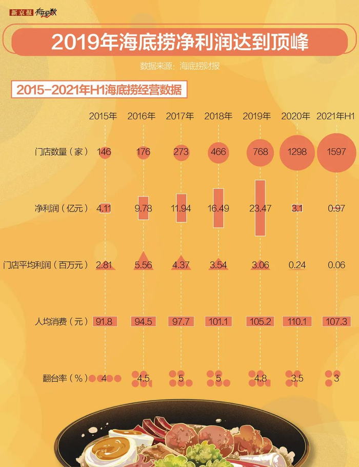 截至2021年6月末的12个月内,海底捞净新增门店623家,在2020年6月末868家门店的基础上增加了71.77%。其中三线及以下城市净新增门店344家,占据新增门店总数一半以上。