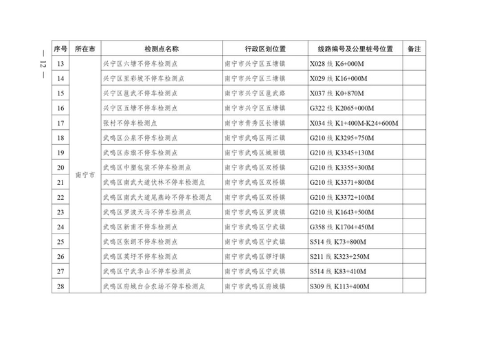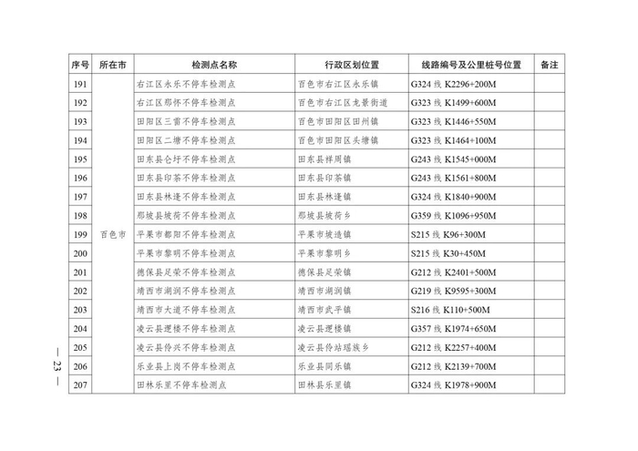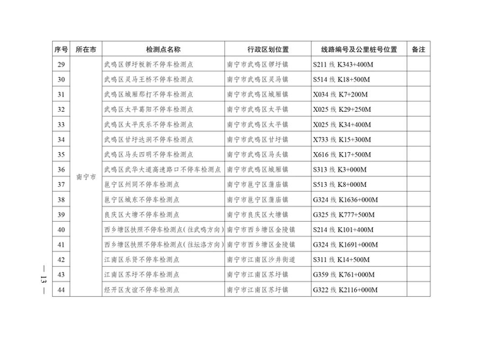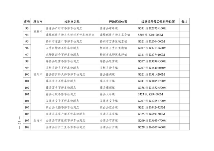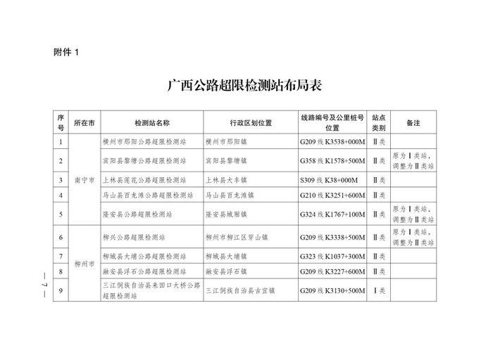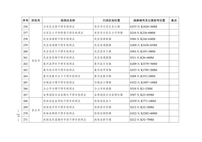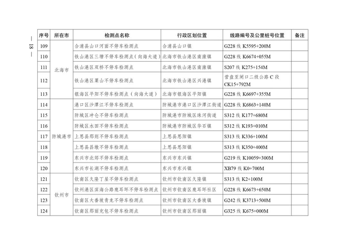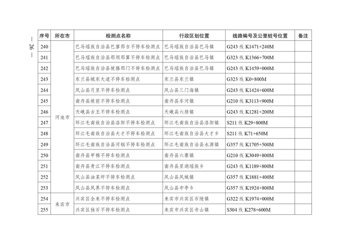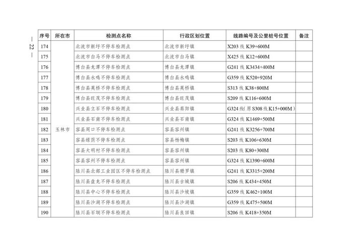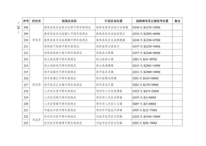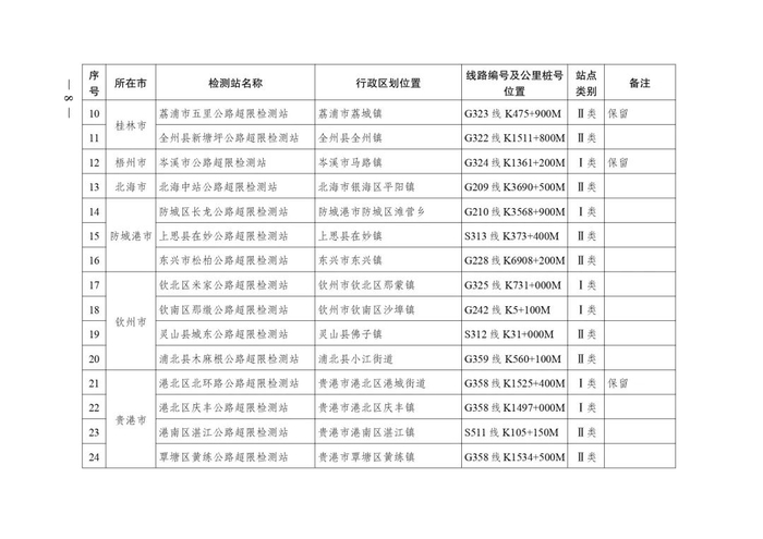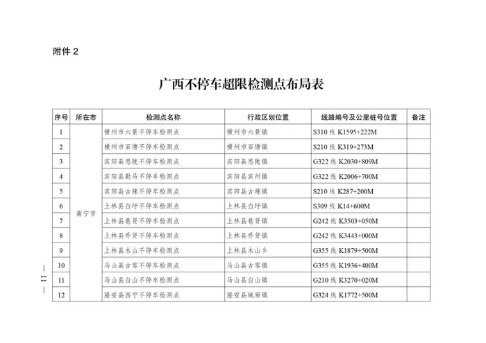 2.广西不停车超限检测点布局表