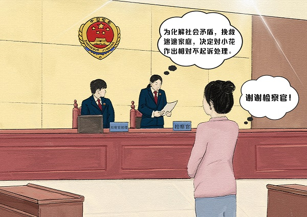 对小花作出相对不起诉处理