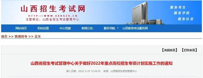 @高考生 山西2022年重点高校招生专项计划公布