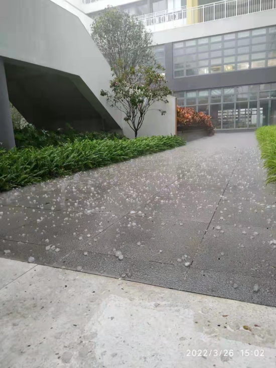 狮山突降冰雹,最大约4-5厘米