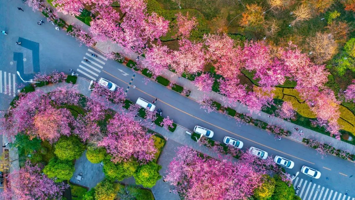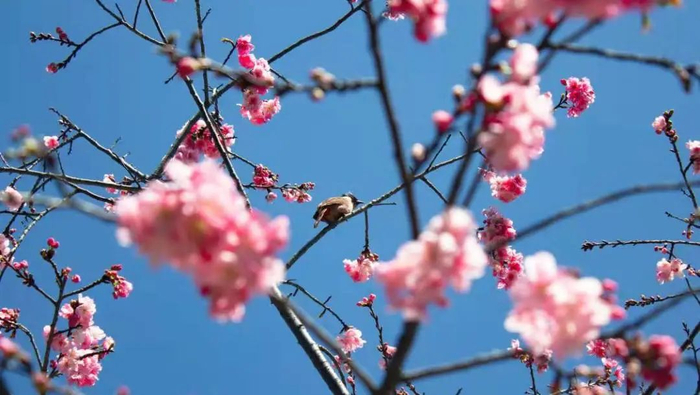 相比于“淡红娇嫩”的日本樱花,云南樱花浓艳热烈,盛花期满树繁花似锦,花团雍容大方。云南樱花盛花期正值“3·8”女神节,盛放的樱花恰如独立大方的美丽御姐,在亮丽的春季绽放风采。