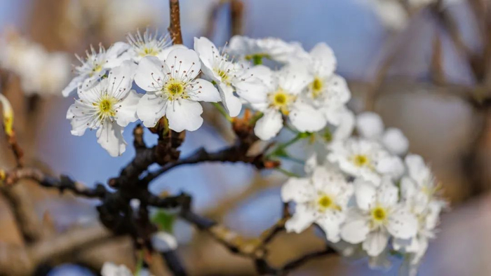 撩开春色的序幕,或含苞欲放,或悠然吐蕊,洁白的梨花犹如谦逊温和的翩翩君子,吟诵着春日最美的诗词。