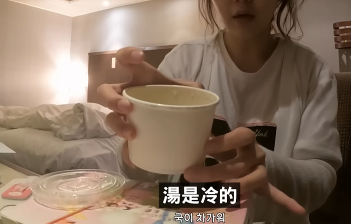 到了午餐,汤淡得像水一样,饭也是凉的。