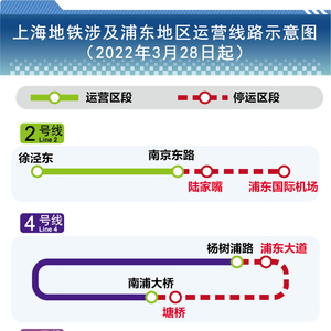 为配合疫情防控工作需要,2022年3月28日运营开始至3月31日运营结束,暂停上海黄浦江以东、以南范围以内所有轨道交通车站运营,停运车站不办理进出站及换乘业务,请市民乘客理解和支持。停运区段具体为: