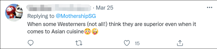 “这就是一些西方人的优越感,即便在亚洲餐上。”