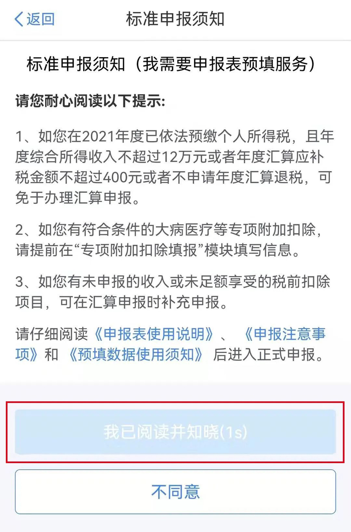 阅读申报须知后点击“我已阅读并知晓”。