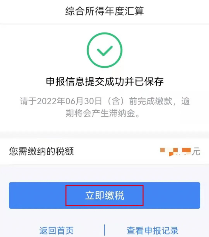 请注意:根据《国家税务总局关于办理2021年度个人所得税综合所得汇算清缴事项的公告》,“年度汇算需补税的纳税人,年度汇算期结束后未足额补缴税款的,税务机关将依法加收滞纳金,并在其《个人所得税纳税记录》中予以标注。”