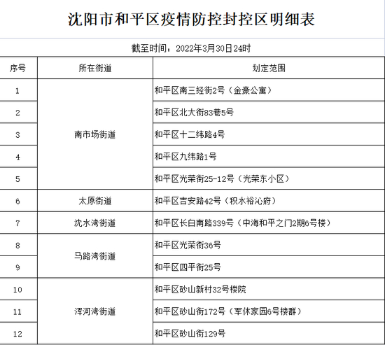 具体划定区域见《沈阳市和平区疫情防控封控区明细表》。管理措施要求: