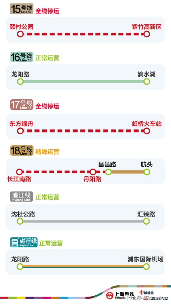 另外,6号线、16号线、浦江线、磁浮线恢复正常运营。