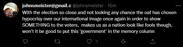 有网友认为,莫里森是在大选前营造了一个“虚伪的国际形象”:“随着大选临近,(但他)没有任何机会,这个笨蛋为了向选民展示一些东西,又一次选择(营造)了虚伪的国际形象,让我们的国家看起来像个傻瓜...”↓