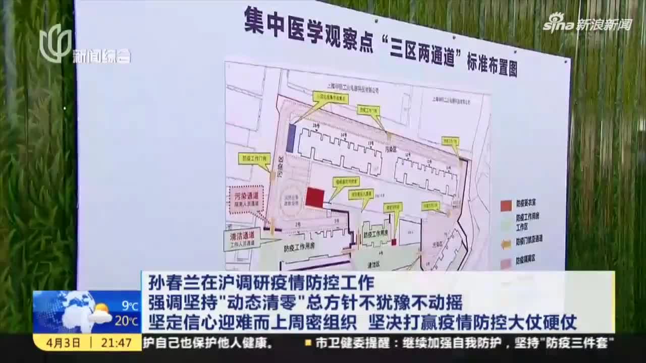 中共中央政治局委员、国务院副总理孙春兰今天(4月3日)在上海调研疫情防控工作,前往集中隔离点、医疗救治点、高校、公安指挥中心,实地了解隔离管控、医疗救治、校园防疫以及流调溯源等情况,看望持续奋战一线的抗疫人员,转达习近平总书记对广大干部群众的关心和慰问。孙春兰强调,要深入贯彻习近平总书记重要指示精神,坚决落实党中央、国务院决策部署,坚持“动态清零”总方针不犹豫不动摇,坚定信心,迎难而上,周密组织,坚决打赢疫情防控大仗硬仗,全力守护人民安康、保障城市运行。