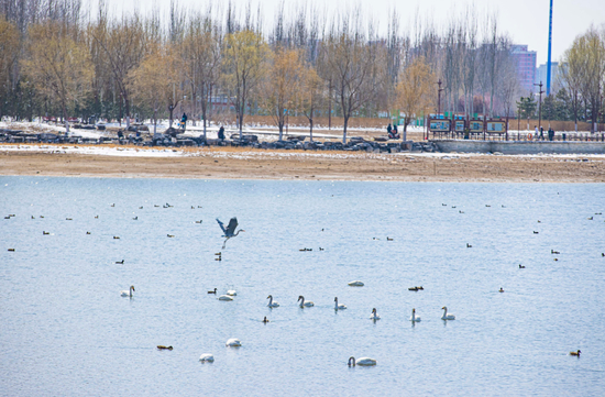 春风如煦,吹动池水涟漪。作为北京城南最大的湿地公园,春天的南海子珍稀鸟类集聚,翠绿的柳枝随风摇曳。
