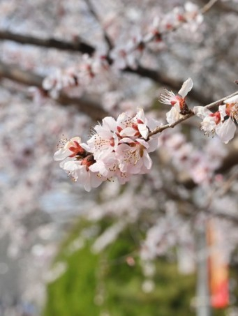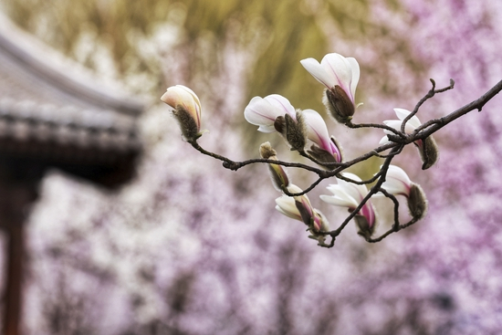 山桃、早樱、迎春、玉兰纷纷怒放枝头。