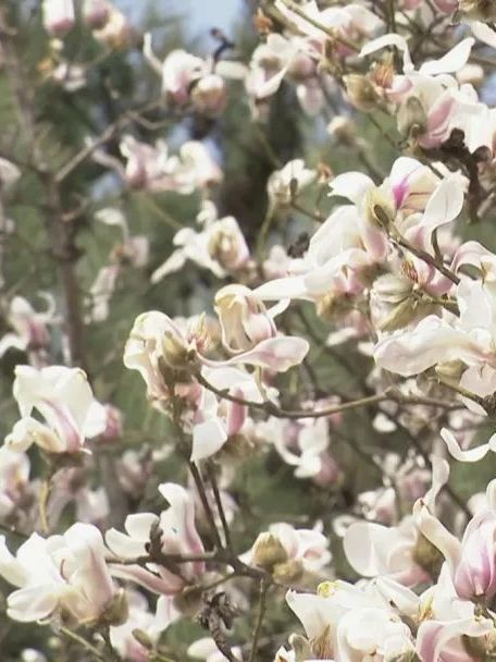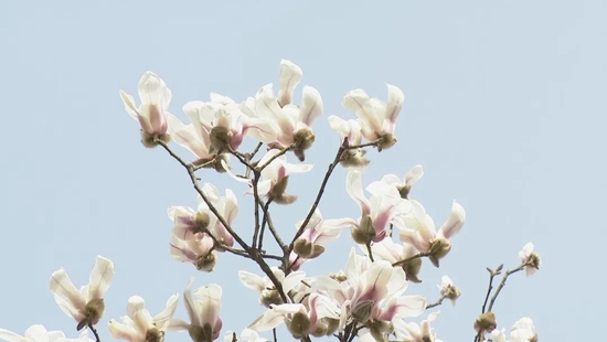 玉兰花开之时,满树花簇,在光与影的交织中,不急不缓,次第盛放。顺义花博会主题公园内种植的玉兰花有粉色、白色等多个品种,共计100余棵,现已全部盛开。