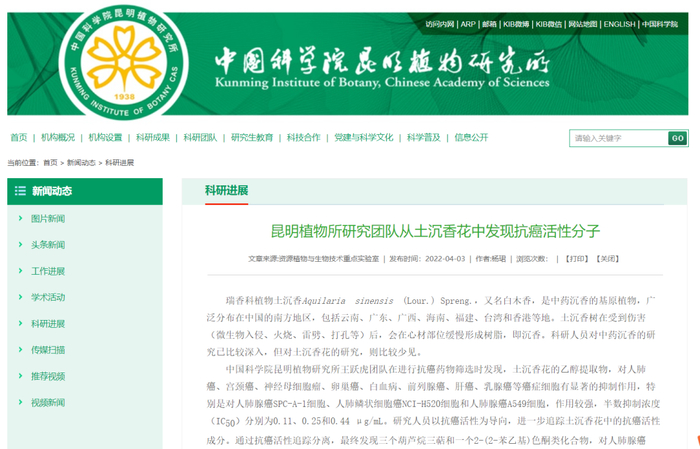 【最新】云南这个团队在土沉香花中发现抗癌活性分子