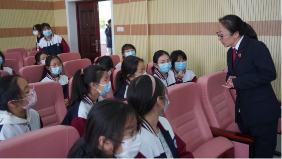 青少年模拟法庭开庭前,冯芳法官及法官助理夏芬、林霞分别向学生们详细介绍了法庭功能、庭审流程和审判长、公诉人、辩护人的职责。