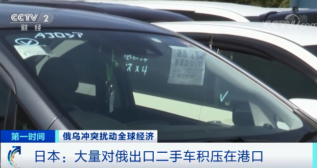 在日本千叶县的一个港口,停在港口附近的这些都是二手车,原本车辆会装船运往俄罗斯。但现在车窗上都贴着这样一张纸,上面写的是“俄罗斯,退货”。这些二手车的经销商告诉记者,受俄乌局势影响,从2月底到现在,已有超过3000台二手车积压在这里。