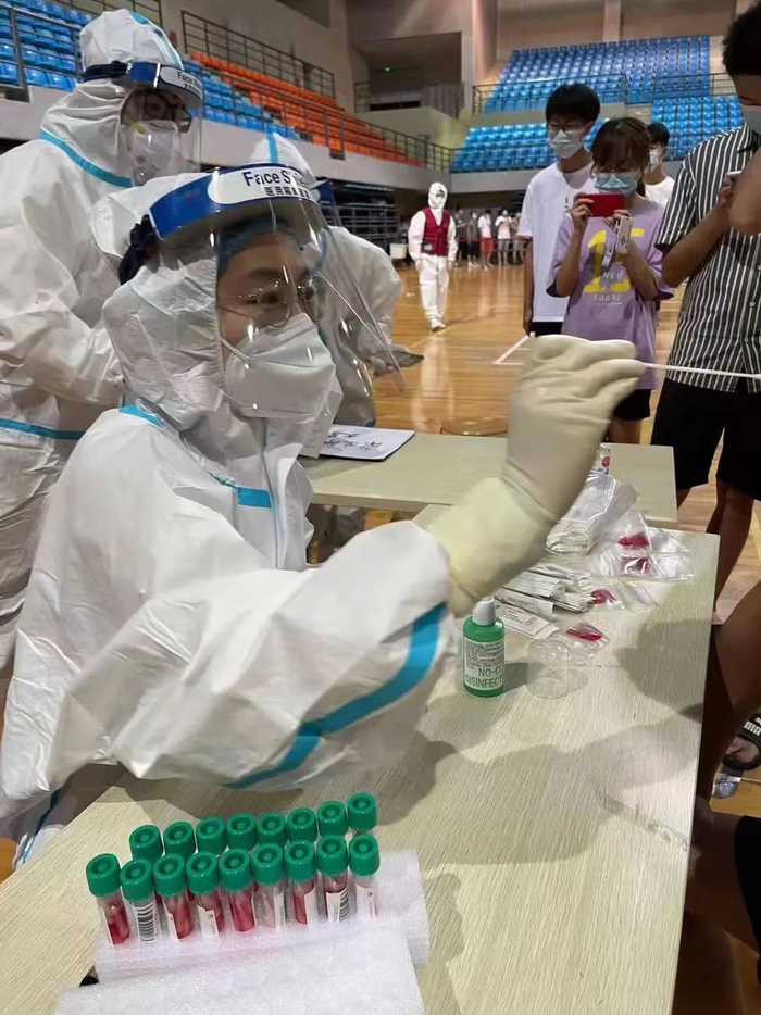“核酸检测采样工作量大,深夜十一点、凌晨三点的校园,都是我们常见的风景。”深夜依旧灯火通明的体育馆,一户一户敲响隔离师生的门,匆忙吃完盒饭就迅速到岗……这些都是校医院的医护人员这段时间最熟悉的场景。