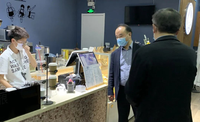 “每次到外专楼协助医生进行核酸检测时,总有学生认出我来,主动和我打招呼,很是亲切,高个子的男生还会曲下膝盖来配合我们的工作”。博园6栋管理员陈李民除了日常的值班工作以外,便会前往外专楼支援防疫工作,每天穿梭在不同楼层的走廊中,她的脚步声和爽朗的声音,也成为学生们听到的最熟悉、最安心的声音。