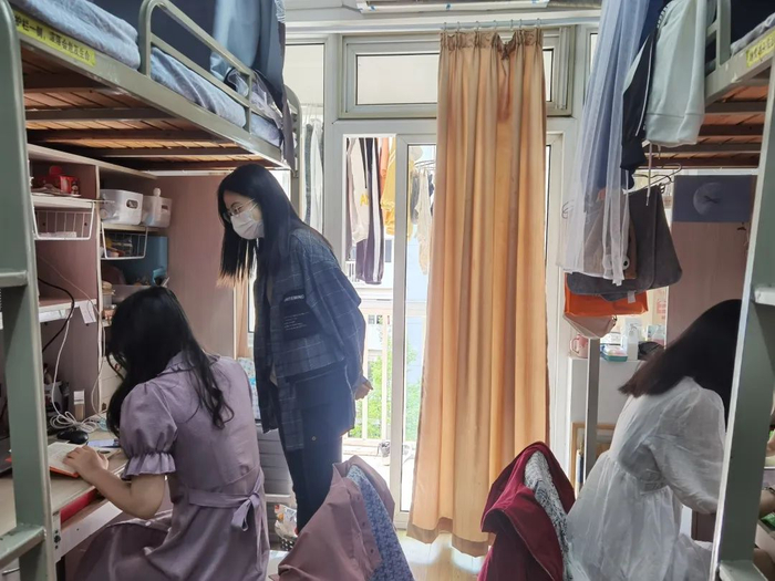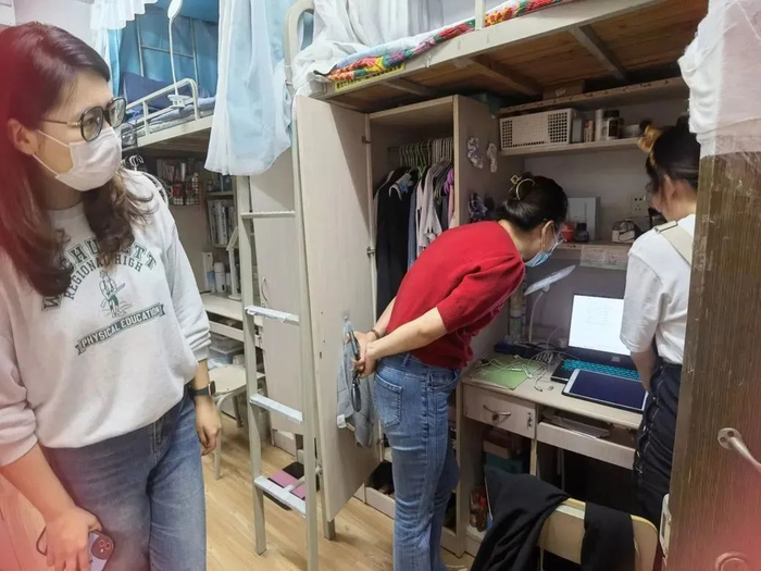 高琦负责的是一个拥有351人的大队伍。日常数据报送、核酸检测、健康打卡、体温晨午检等疫情防控数据都需要精准报送。她在年级组织了五支“爱心防疫”队伍,为其他同学提供“提醒”服务。每日进寝室与学生尽情畅聊也是高老师雷打不动的功课,帮助同学们保持良好的心态,及时帮助学生解决遇到的问题。为丰富同学们业余生活,与校区其他学工人员一起策划一系列趣味文体活动,定期带着学生去操场散步、跳舞、唱歌,拉近与学生们距离。