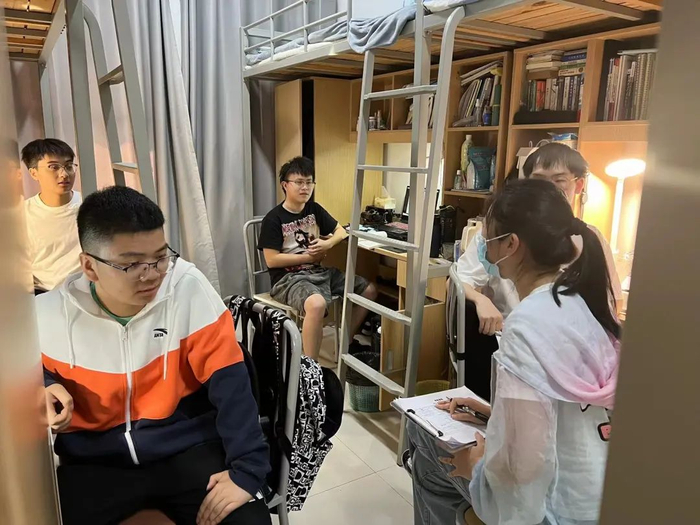 王彤、胡浩楠是来自能源与动力学院的大四学生,也是每次疫情防控都冲在前线的学生志愿者。“报名志愿者我们都是用抢的,没几分钟就全部爆满了。”王彤描述到自己报名时的情形。