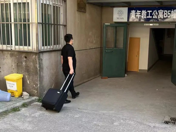 “有困难,找阿姨。”这是每一个南航学生经常挂在嘴边的一句话,也是对每一个公寓人员工作的认可与情感的依赖。3月17日,结束隔离期的学生王雨桐需要将行李拉回原宿舍,但连续的大雨阻碍了他的脚步。他拨通了陈李民的电话寻求帮助,当时陈李民并不在值班,出于担心雨天淋湿学生的身体和行李,她便立即开车前去帮助。“能被同学们需要,是我的骄傲。”陈李民开心地说道。
