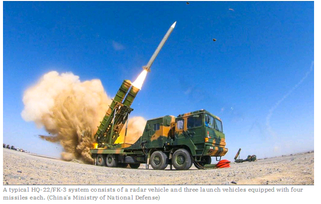 FK-3/“红旗-22”防空系统的典型火力单元(导弹连)包括1辆雷达车和3辆导弹发射车