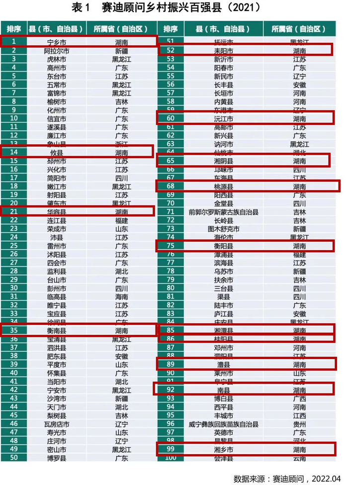 2021乡村振兴百强县来了,湖南这14个县(市)上榜