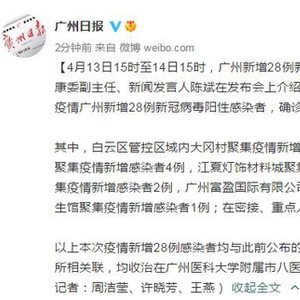 广州市卫生健康委副主任、新闻发言人陈斌在发布会上介绍,4月13日15时至14日15时,本次疫情广州新增28例新冠病毒阳性感染者,确诊病例23例,无症状感染者5例。