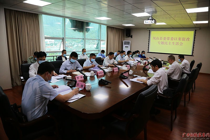 河池市纪委监委相关领导和对应联系室的同志现场指导召开凤山县委常委“以案促改”专题民主生活会。