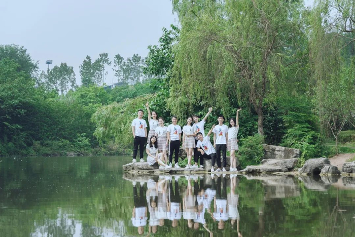 约上三五好友在湖畔来一张合影