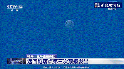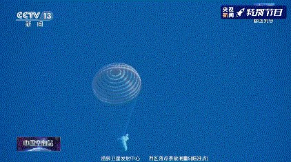 神舟十三号载人飞船返回舱主降落伞打开。