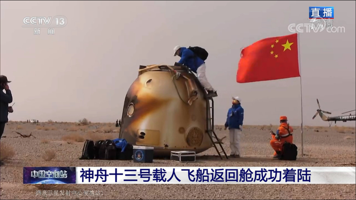 北京时间2022年4月16日09时56分,神舟十三号载人飞船返回舱在东风着陆场成功着陆,航天员翟志刚、王亚平、叶光富身体状态良好,神舟十三号载人飞行任务取得圆满成功。