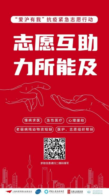 同样,上海真爱梦想公益基金会创始人潘江雪、儿童友好社区创始人周惟彦、益社创始人李磊和NCP生命支援创始人郝南联合发起抗疫紧急志愿行动,并于4月9日正式开通线上求助渠道,为老弱病残幼、求医问药的患者、需要心理援助的居民、以及急需物资的医护人员和社区志愿者提供力所能及的志愿服务和支持。