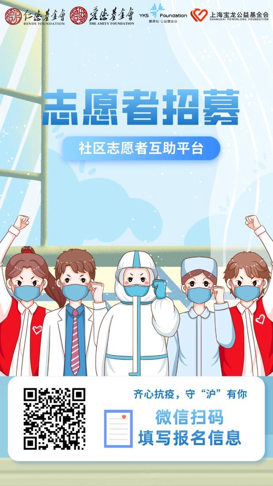 上海仁德基金会和爱德基金会携手上海壹棵松公益基金会、上海宝龙公益基金会,于4月10日正式上线“守护志愿者——社区志愿者互助平台”项目。