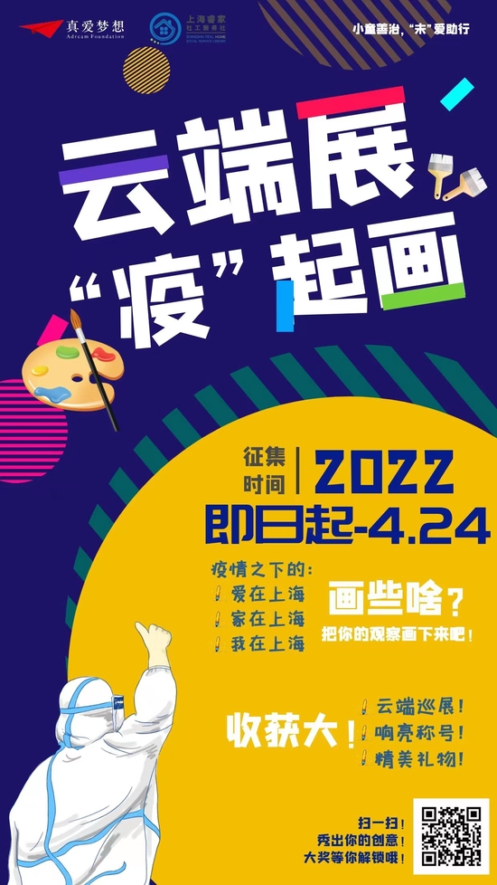 此外,为支持全民理性抗疫,上海真爱梦想公益基金会还联合了上海睿家社工服务社,邀请上海的儿童和青少年通过录制视频来为抗击疫情发声。视频中,“小童善治”儿童代表说道,“小口罩,戴戴好,金属条要贴紧小鼻梁”“勤开窗户,通风通气不生病”。同时,在杨浦区未保办指导下,上海真爱梦想公益基金会主办“小童善治,“未”爱助行”项目之云端画展活动,以“疫情之下的上海”为主题,鼓励儿童分享画作创意,成为防“疫”代言人”、“抗“疫”小画家”。