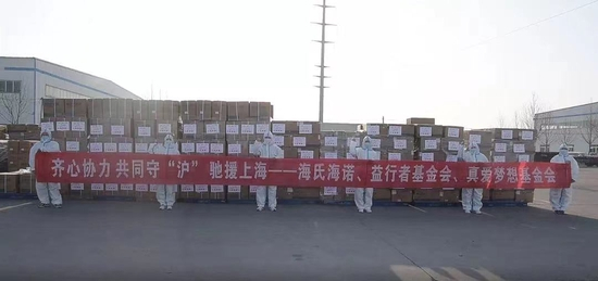 医疗物资方面,上海真爱梦想公益基金会携手青岛海氏海诺集团、北京益行者公益基金会联合发起“齐心协力 共同守‘沪‘抗疫行动”,向“四叶草”方舱医院以及虹口区、普陀区捐赠紧急医疗物资。为保证完成物资运输工作,青岛海氏海诺集团特调配货车配合物资运输,多方力量的配合下,短短一天之内完成所有物资装车,4月11日便送抵上海“四叶草”方舱医院完成物资接收。