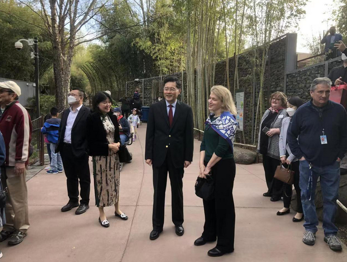 4月16日,美国国家动物园在大熊猫馆举行大熊猫抵美50周年庆祝活动,秦刚大使应邀出席。图源中国驻美国大使馆官网