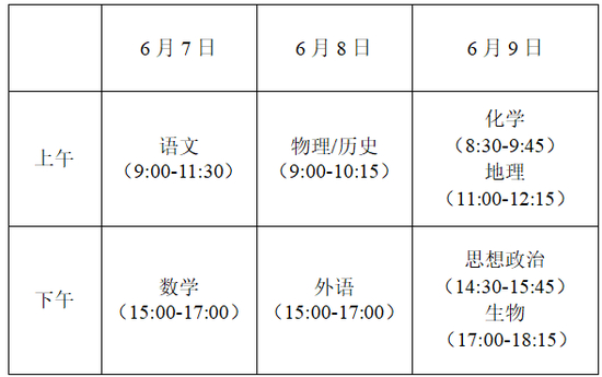 经教育部批准,我省全国统考科目、学业水平选择性考试科目考试时间为6月7、8、9日(具体安排见附件)。