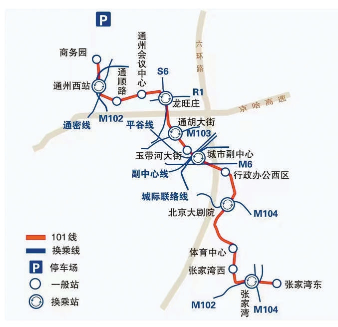 北京城市副中心M101线,是以副中心为核心的轨道交通网络中第一条线路,是副中心内部轨网的骨干线。